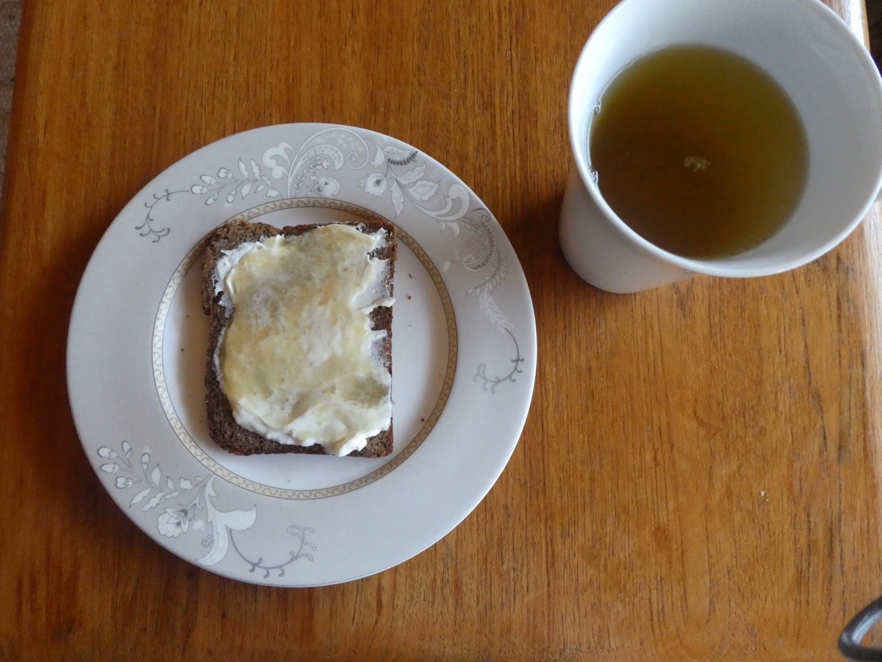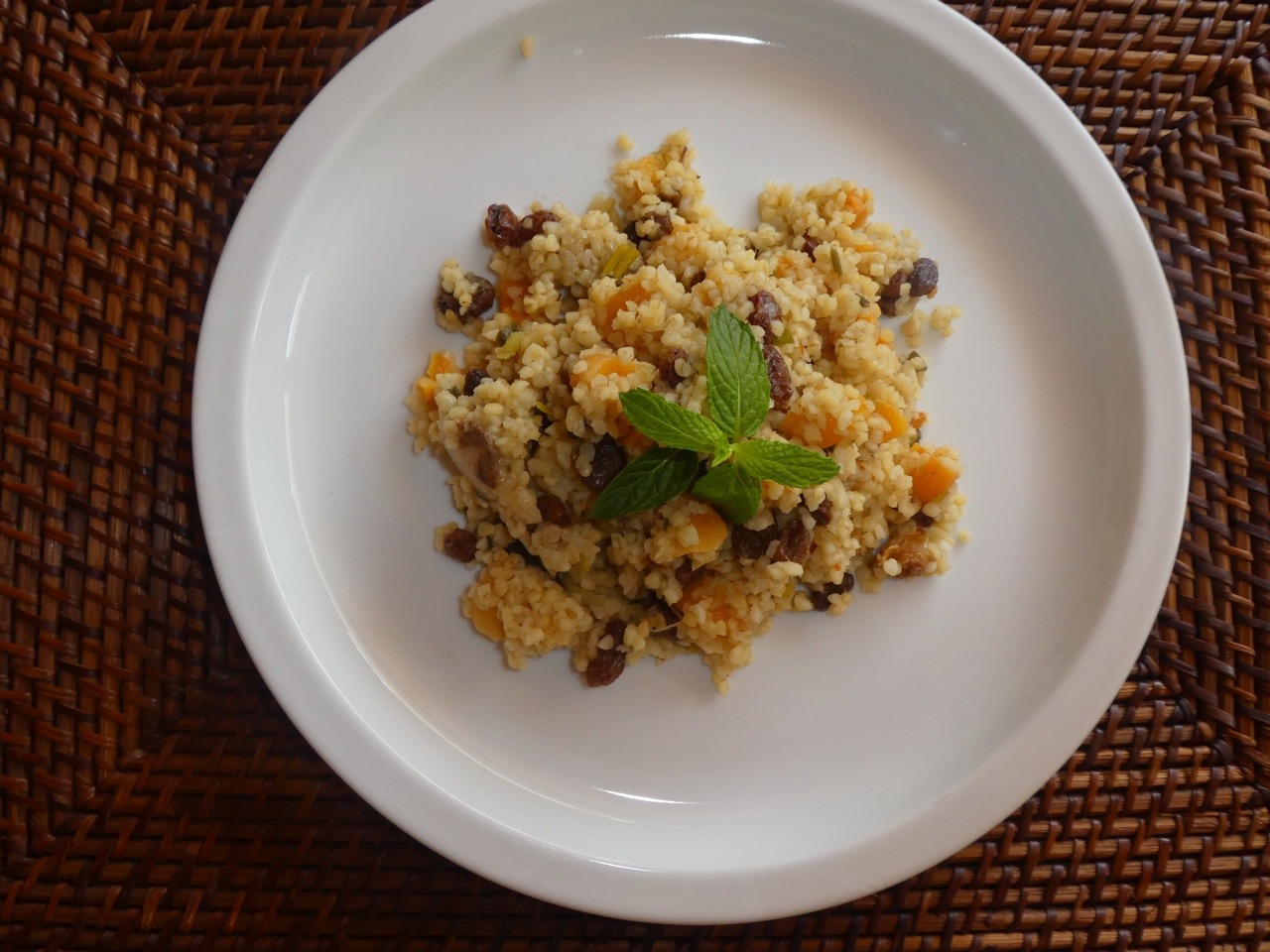 6. Tag: Vollkornbrot mit Yoghurt und Honig mit grünem Tee als Frühstück, ein total feines orientalisches Bulgurgericht mit getrockneten Aprikosen, gewürzt mit Kardamom und Zimt zum Mittagessen. Abends Fenchelsalat mit Orange.
